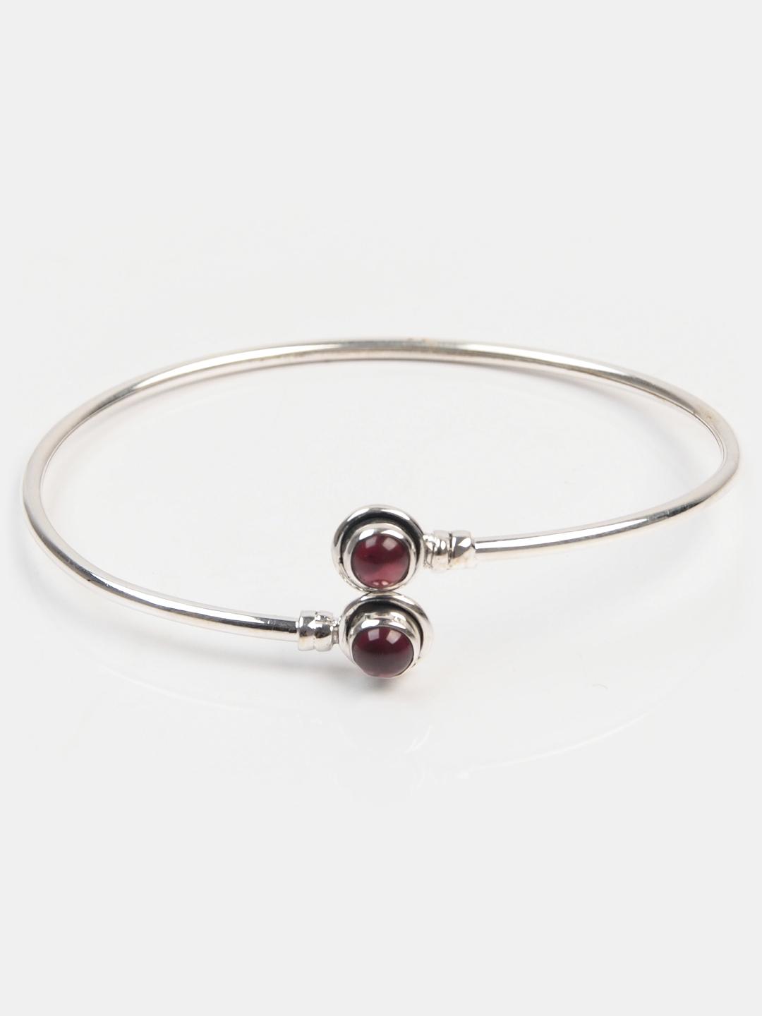 Feminină și delicată, brățara Kumari este lucrată dintr-o tijă tubulară din argint și are capetele decorate cu două frumoase granate caboșon. Cele două brațe se petrec ușor, iar brățara se deschide pe verticală, în dreptul capetelor și se introduce pe mână pe la încheietură.