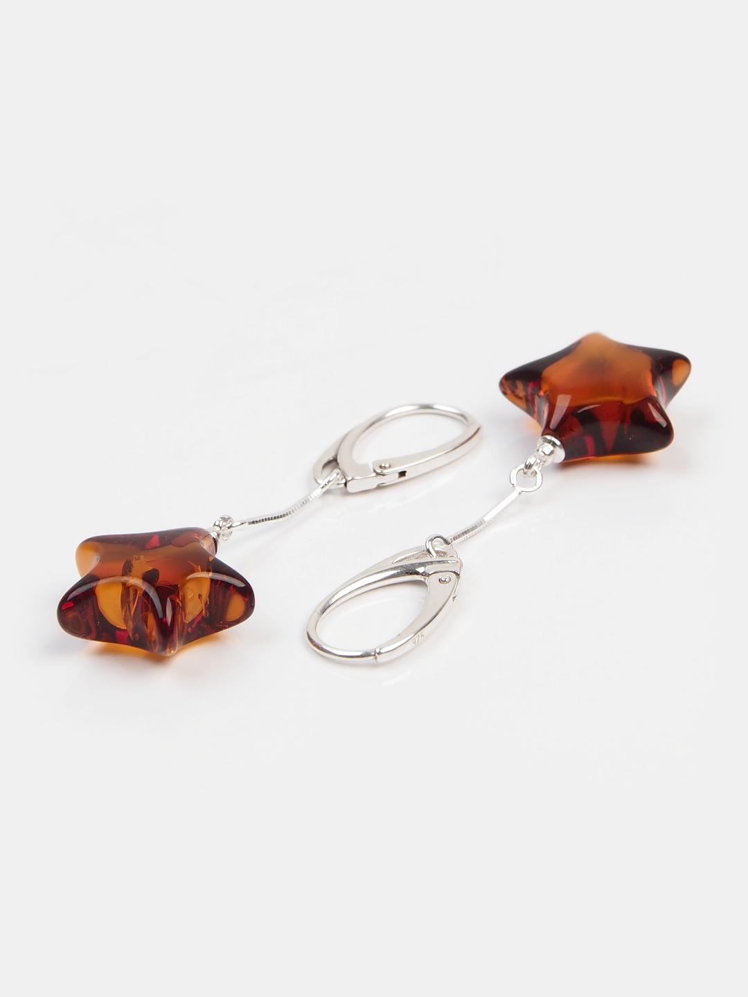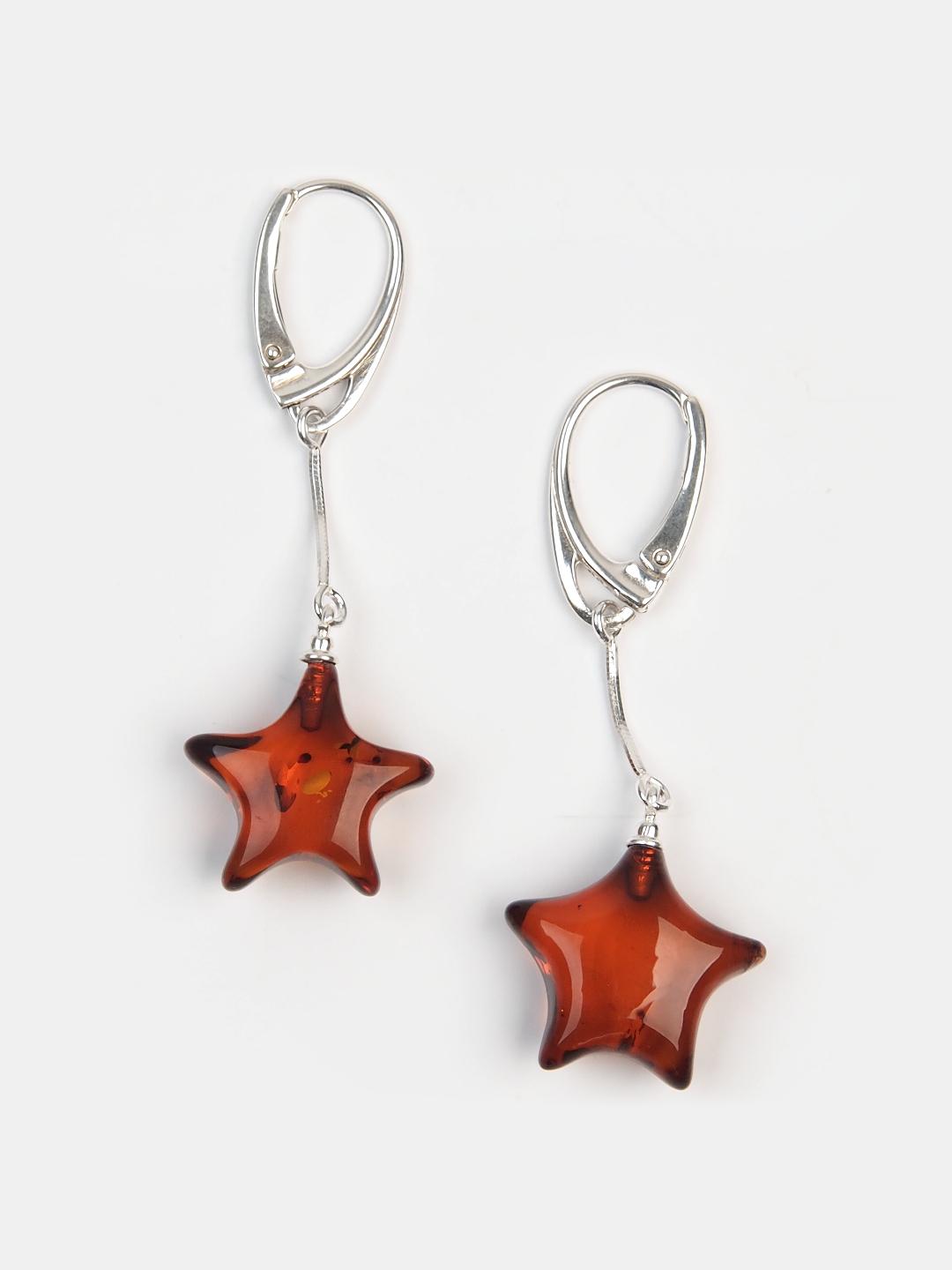 Cercei din chihlimbar natural baltic și argint 925, lucrați manual în serie mică. Deosebit de feminini, cerceii Aureljia cu fermecătoarele lor steluțe de chihlimbar arată minunat la urechi, iar tortița cu închizătoare este nu doar frumoasă, ci și comodă și sigură.