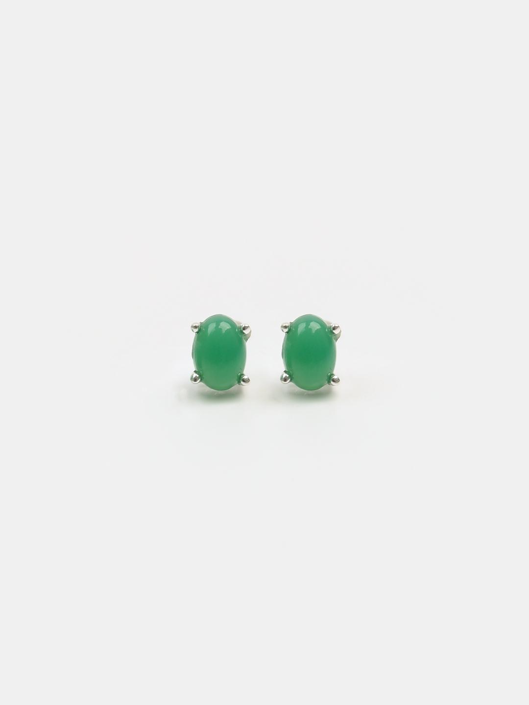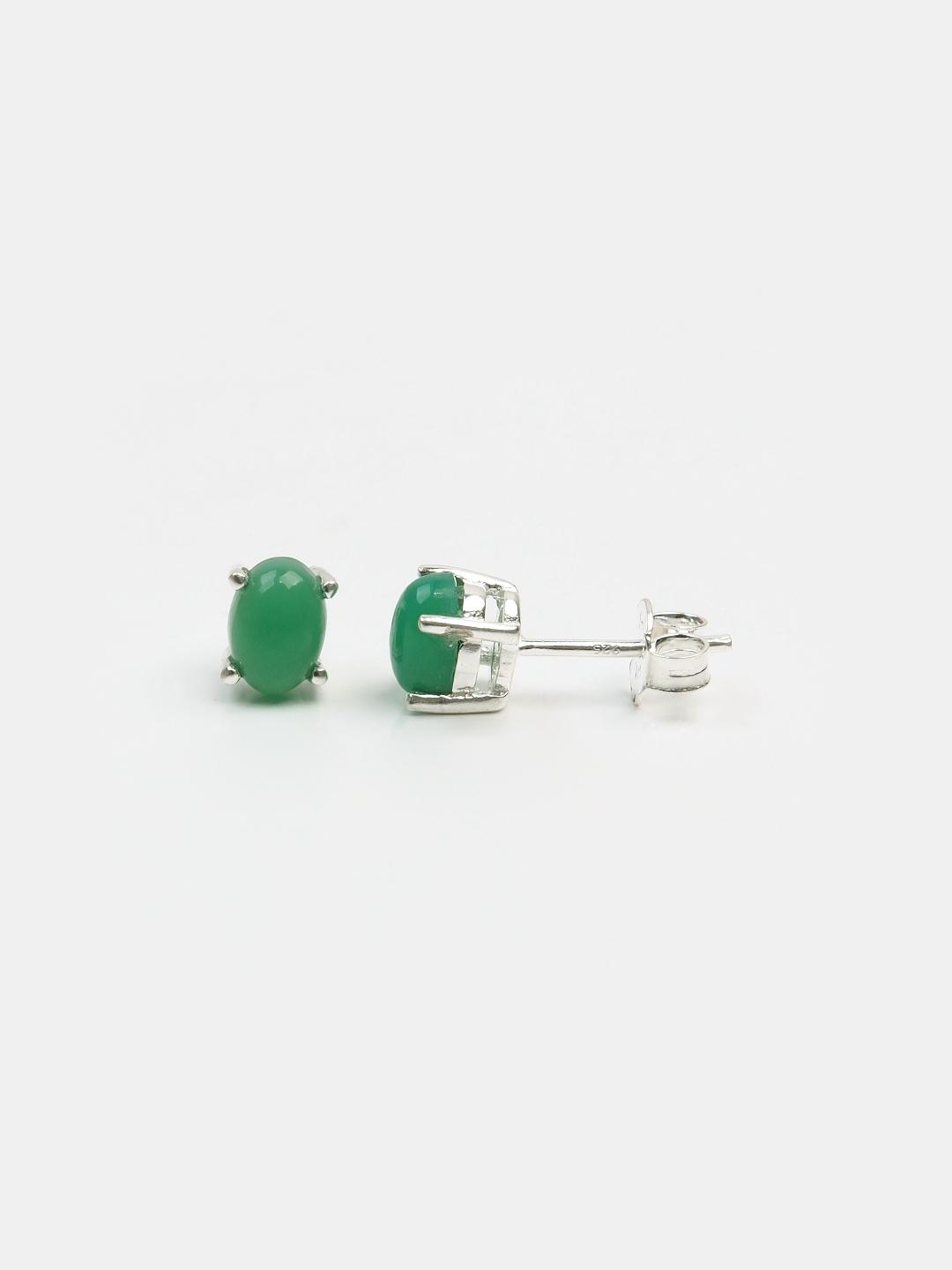 Cercei cu șurub din argint 925 și crisopraz natural caboșon, lucrați manual în India.