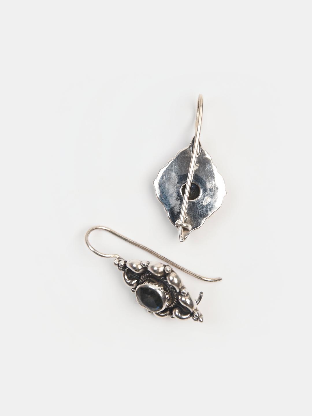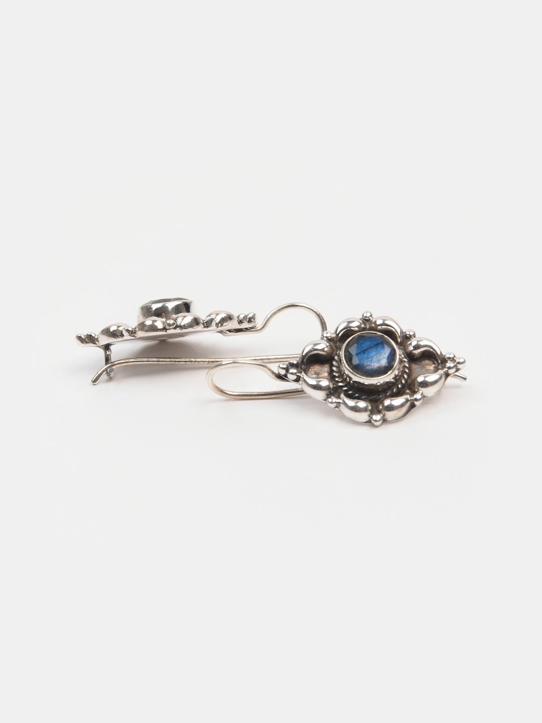 Cercei din argint 925 și labradorit fațetat, lucrați manual în India. Deosebit de feminini, cerceii Hiran au o montură elegantă, clasică, și o tortiță cu închizătoare foarte practică. Însă punctul lor forte este superbul labradorit fațetat din centru, pus în valoare de către floarea stilizată a monturii care îl înconjoară.