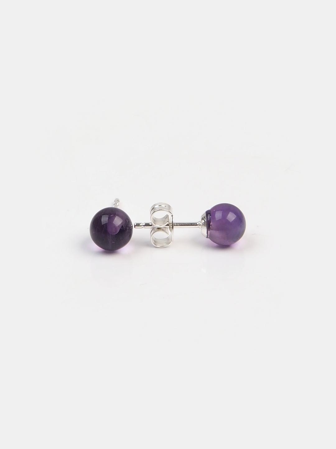 Cercei cu șurubel din argint 925 și ametist, lucrați manual în India. Două mărgeluțe fermecătoare de ametist, perfect rotunde și fără montură vizibilă, se vor așeza minunat la urechi.