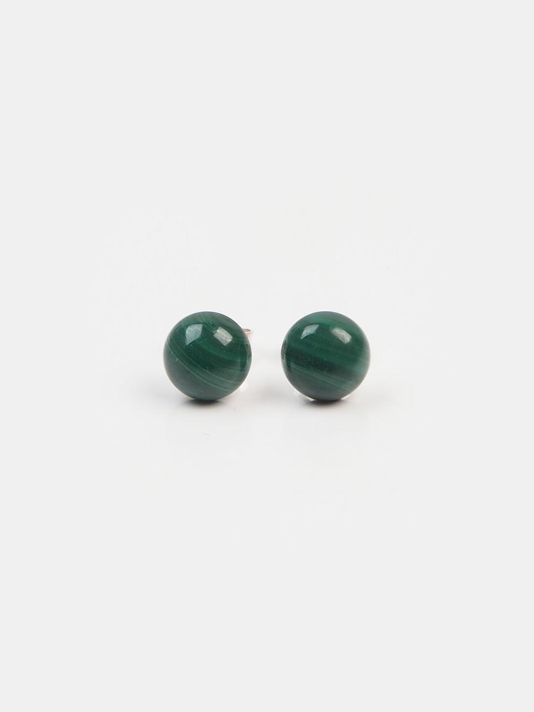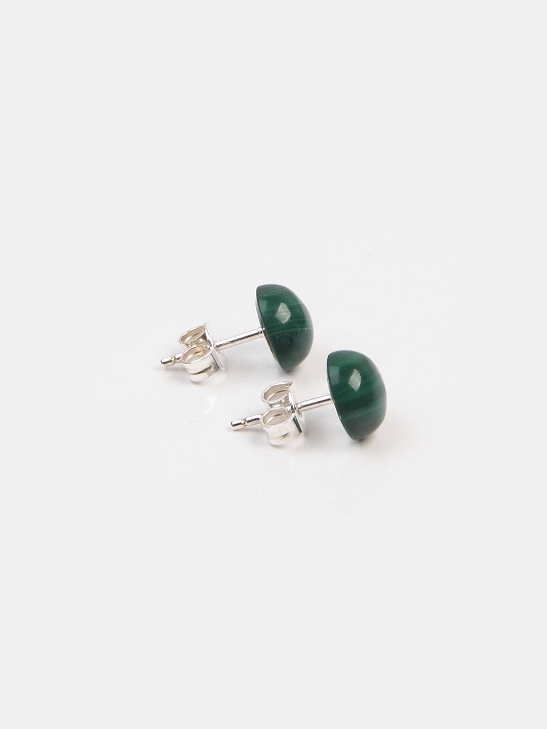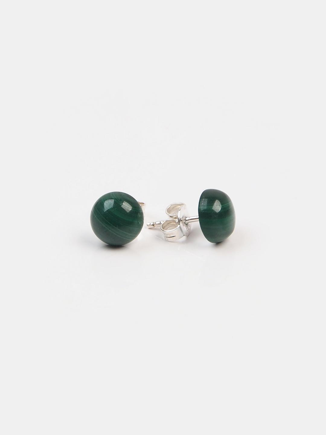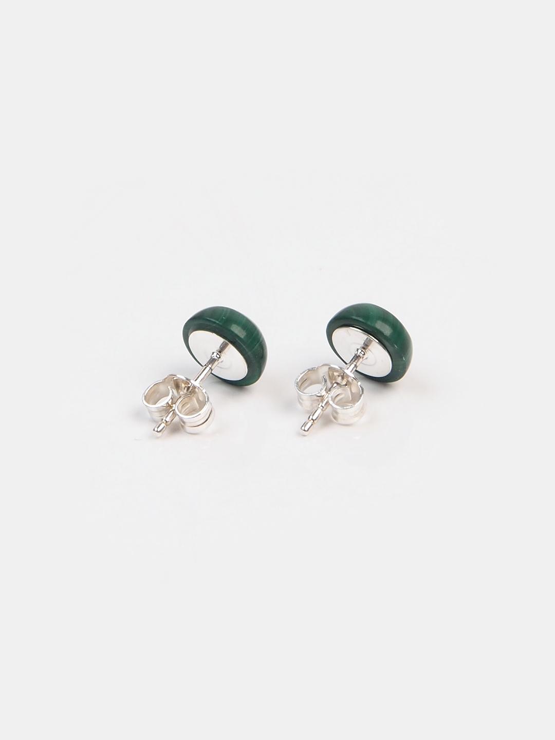 Cercei cu șurubel din argint 925 și malachit, lucrați manual în India. Cercelușii Dhosa, cu două frumoase caboșoane de malachit, se asează minunat la ureche, fiind plați în partea din spate.