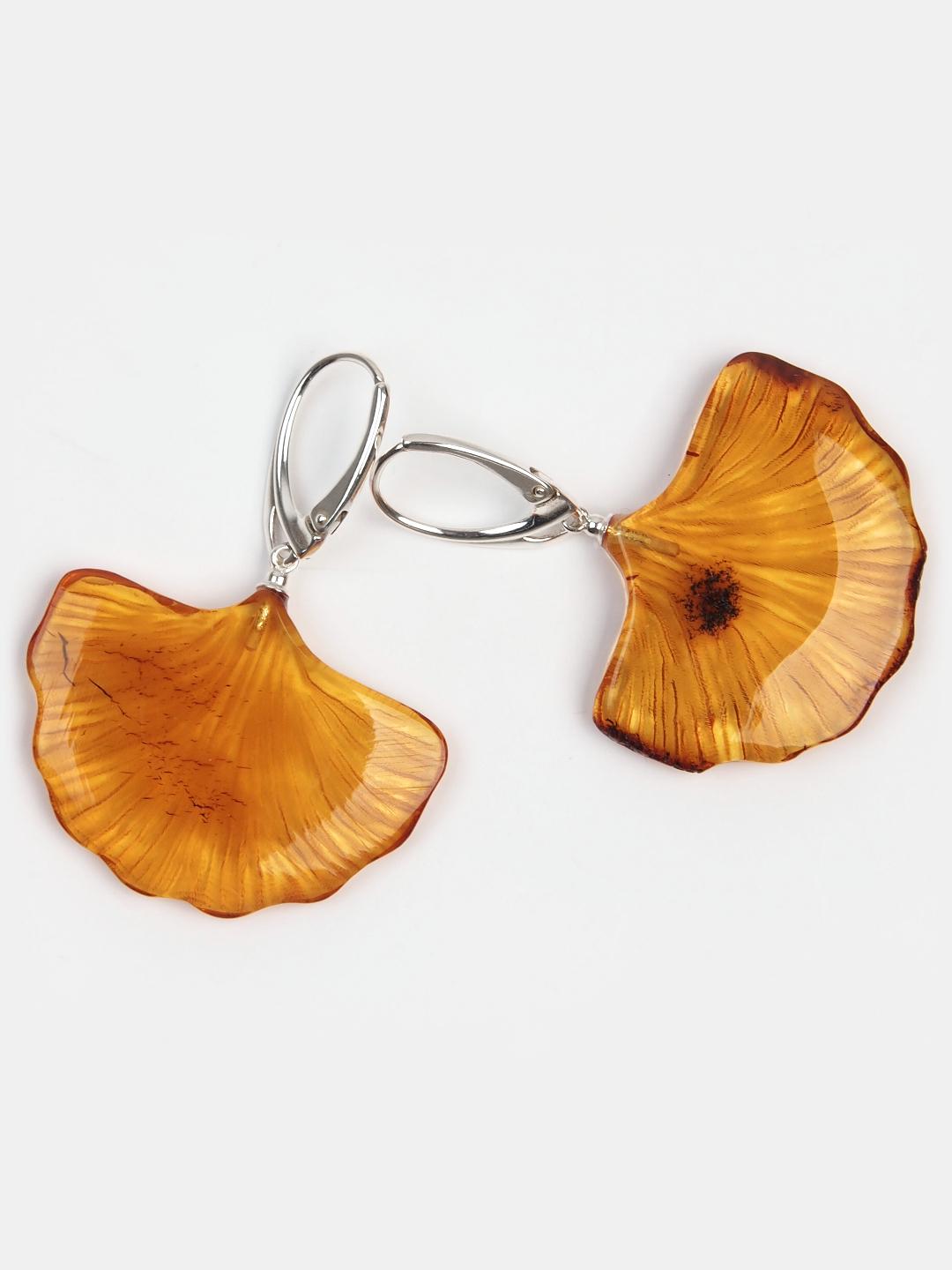 Cercei unicat din argint și chihlimbar Gingko, Lituania