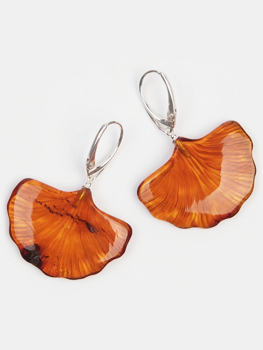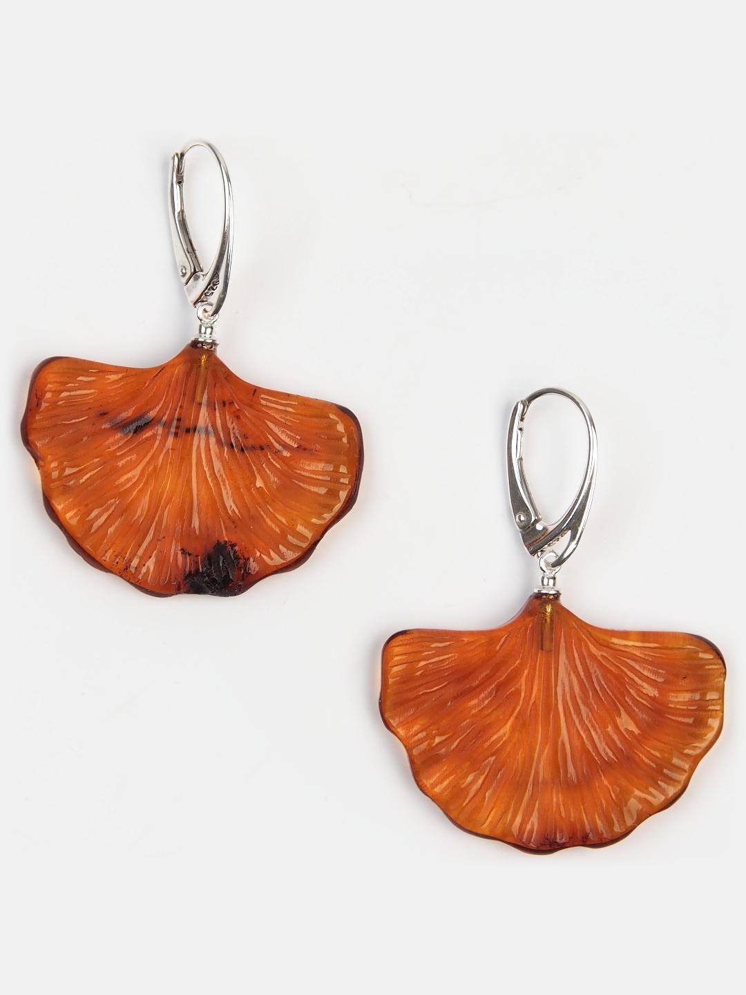Cercei unicat din argint și chihlimbar Gingko, Lituania