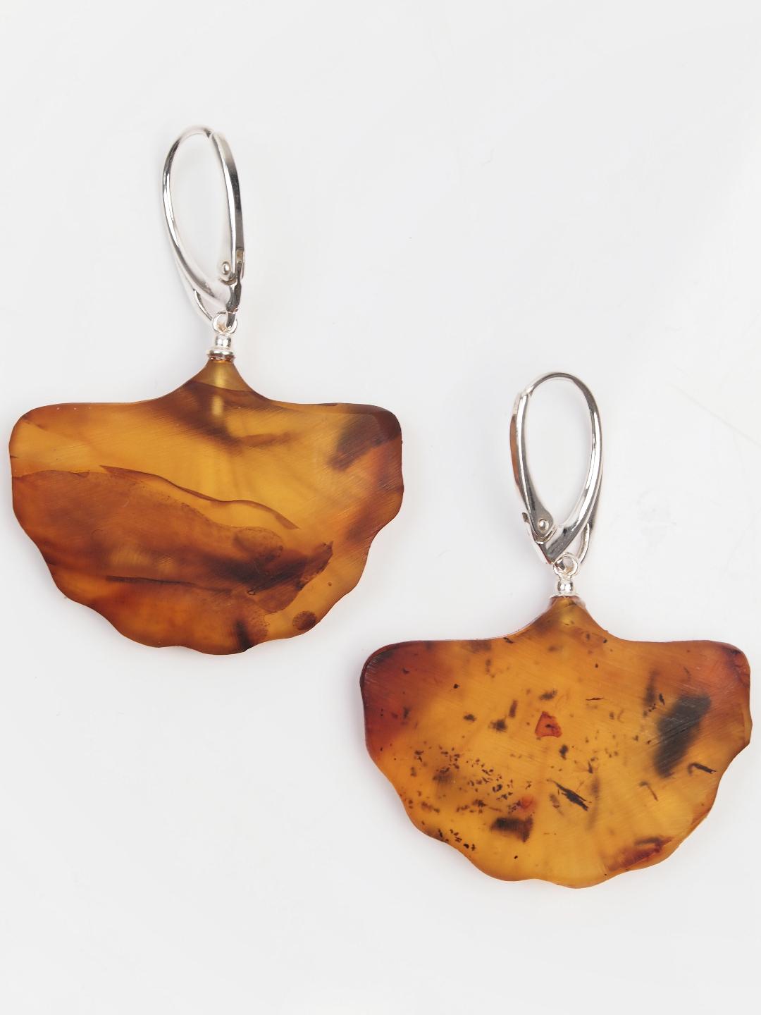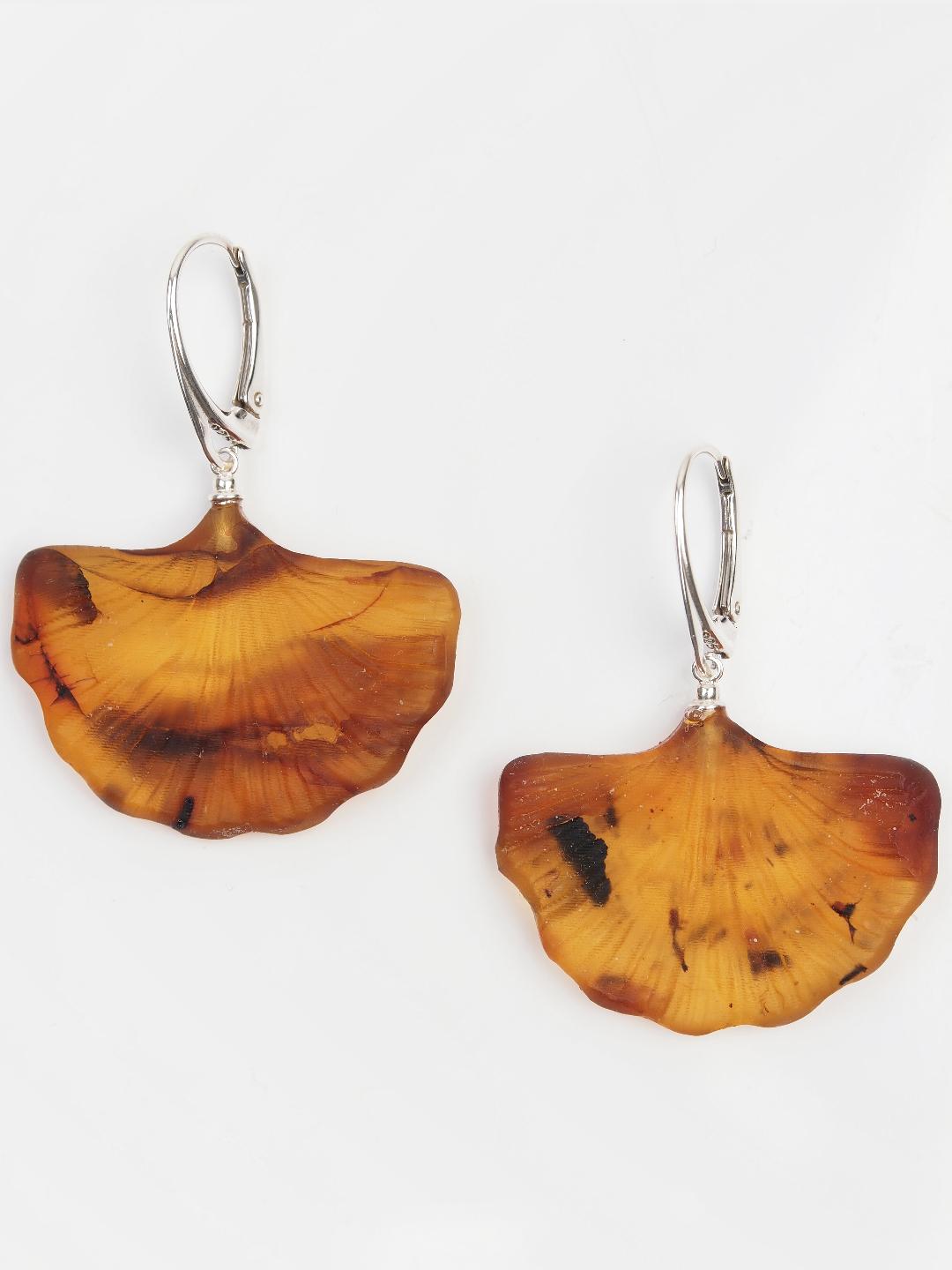 Cercei unicat din argint și chihlimbar Gingko, Lituania