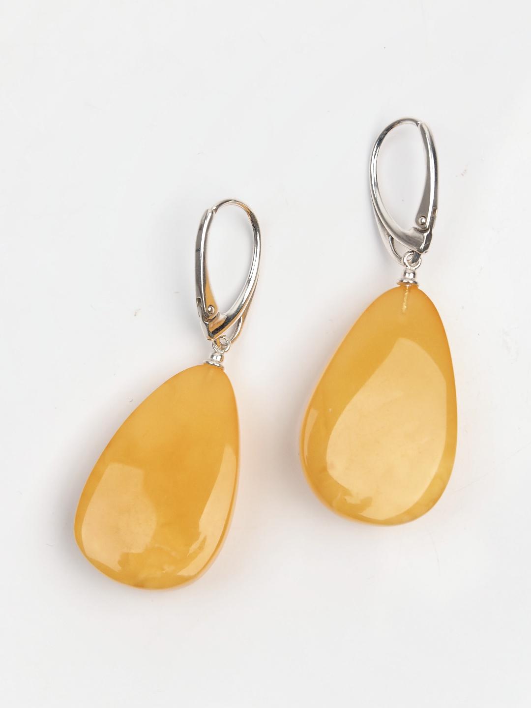 Cercei unicat din chihlimbar natural baltic și argint 925. O pereche superbă de cercei cu două picături generoase din chihlimbar opac, în culoarea mierii, cerceii arată absolut minunat la ureche și sunt ușori, comozi și siguri datorită închizătoarei ideale pentru acest model.