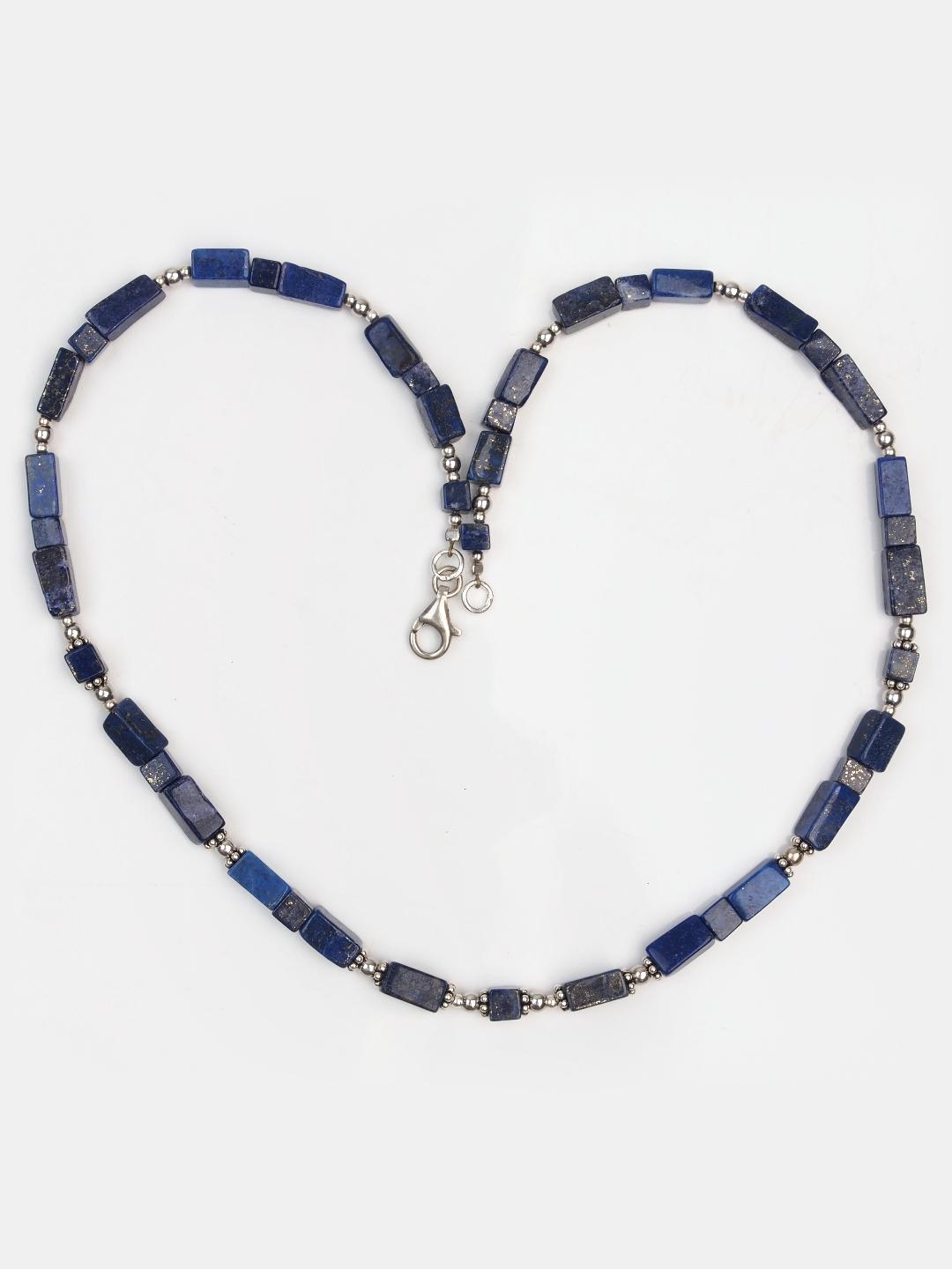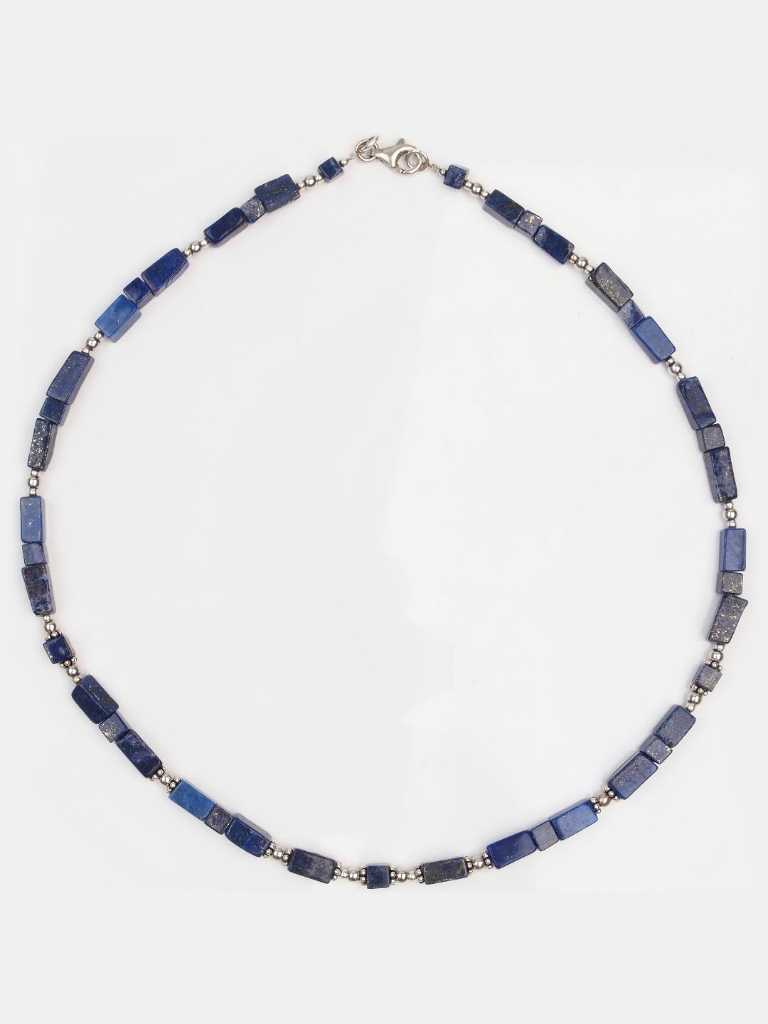 Colierul Neel are un farmec deosebit datorită lapisului într-o formă mai puțin obișnuită, pătrată, dar și grație alăturării de mici elemente din argint delicate și feminine.