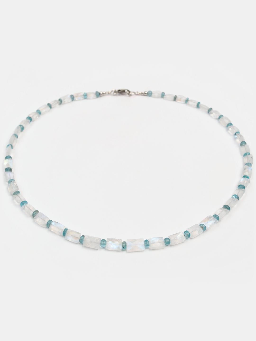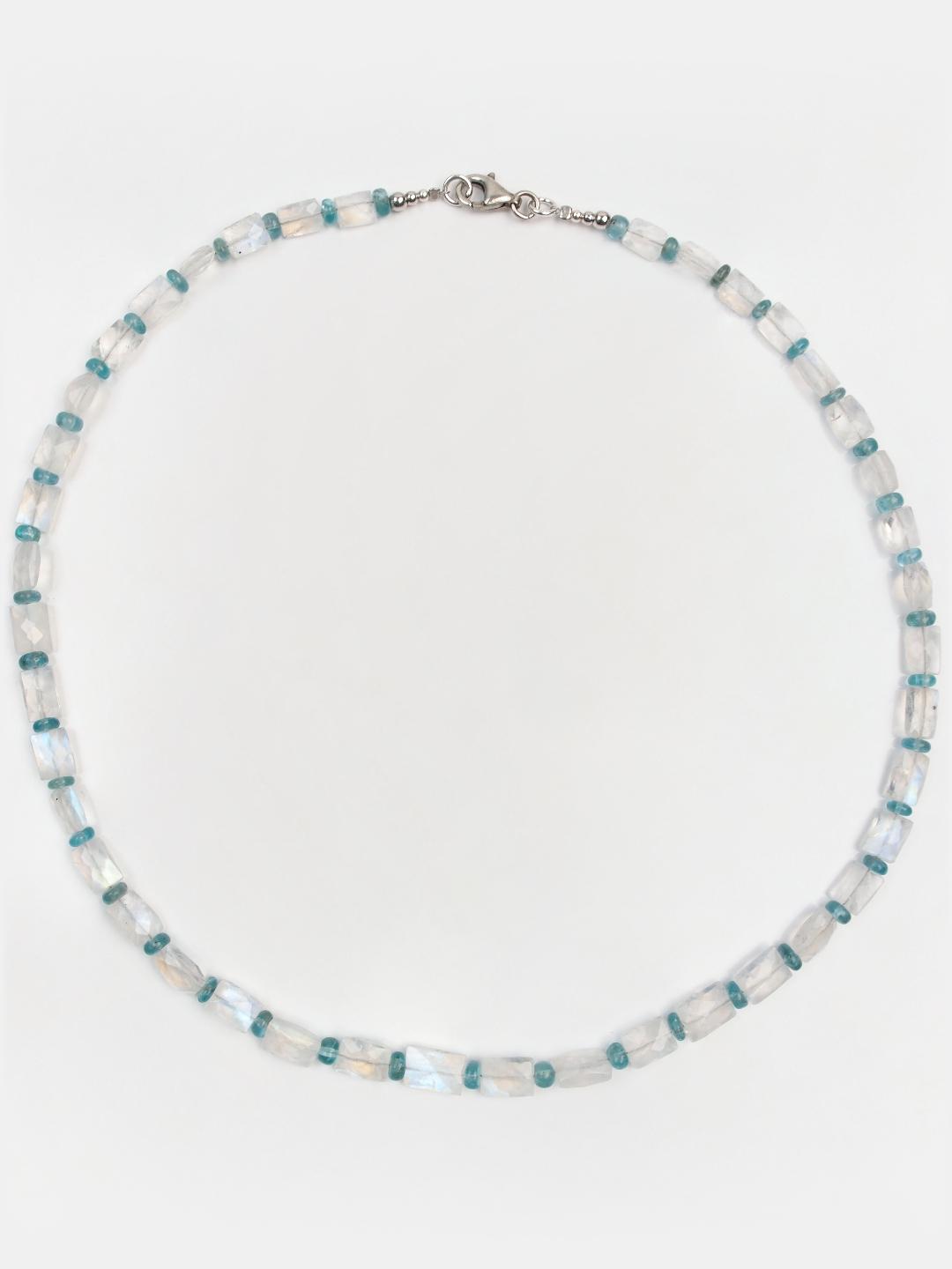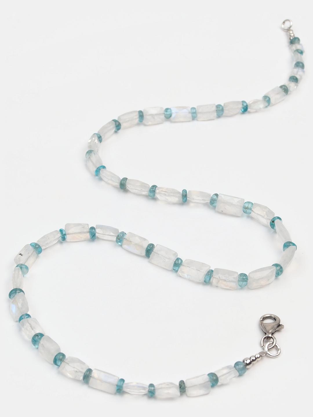 Colier din piatra lunii rainbow fațetată și apatit Chandi, India