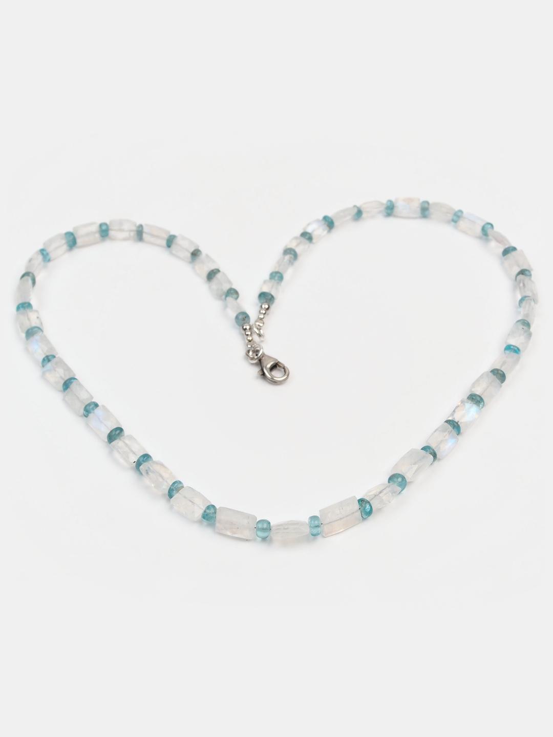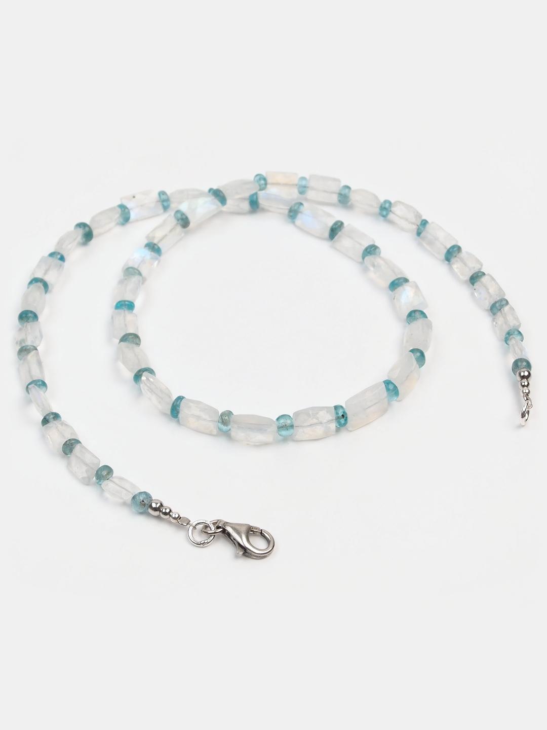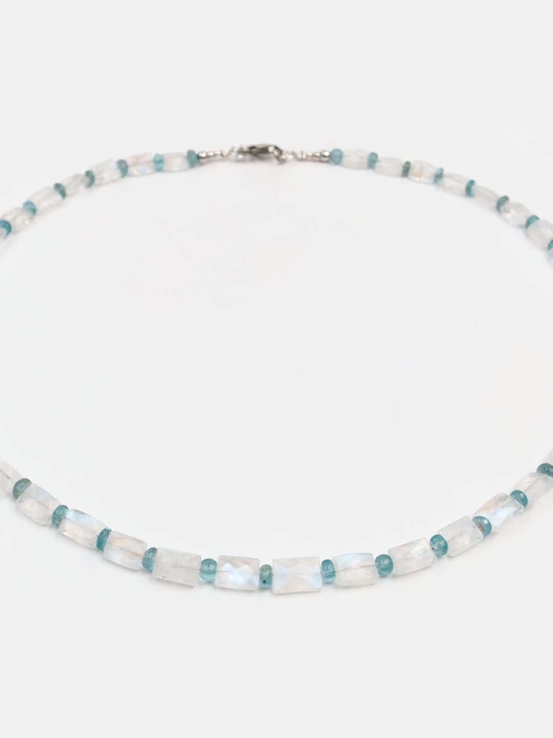 Colier din piatra lunii rainbow fațetată și apatit Chandi, India