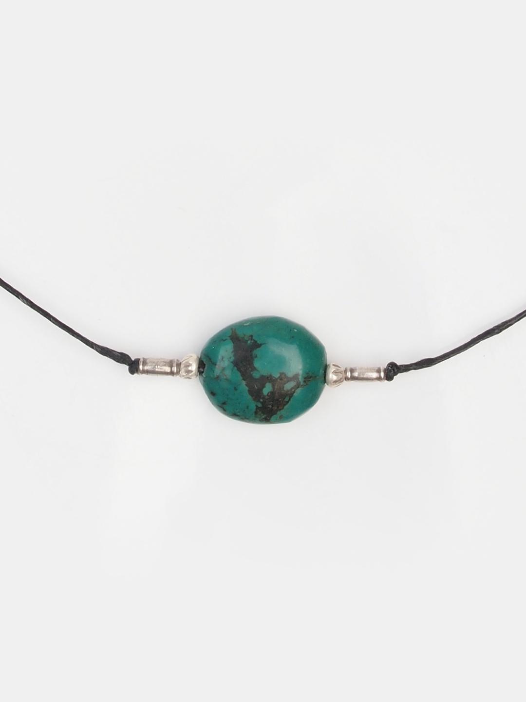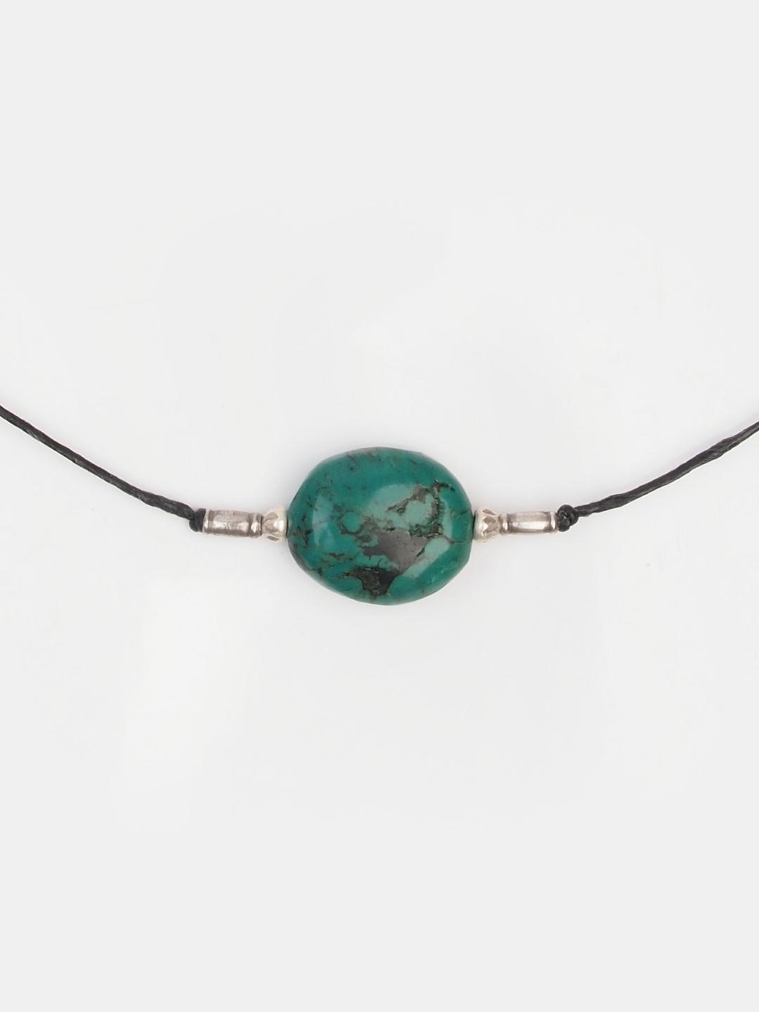 Colier unicat din turcoaz tibetan și argint 925, pe fir negru reglabil.