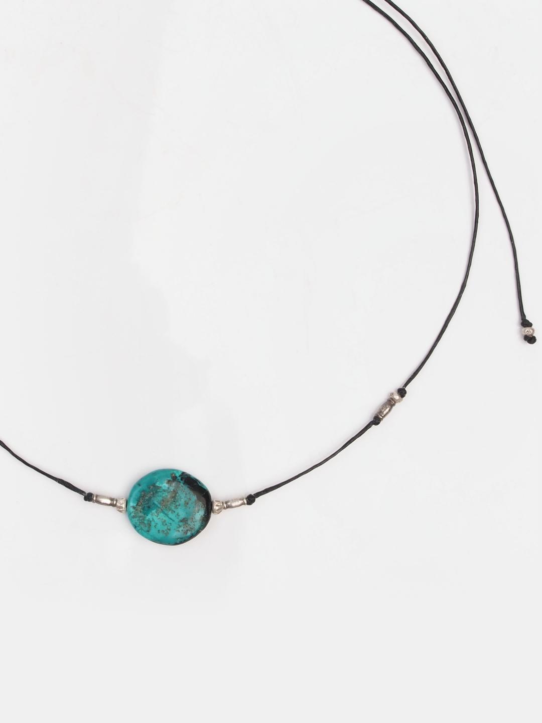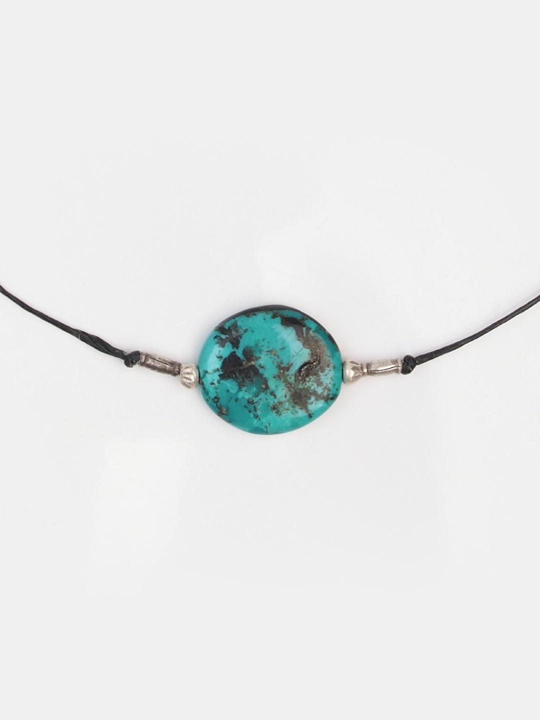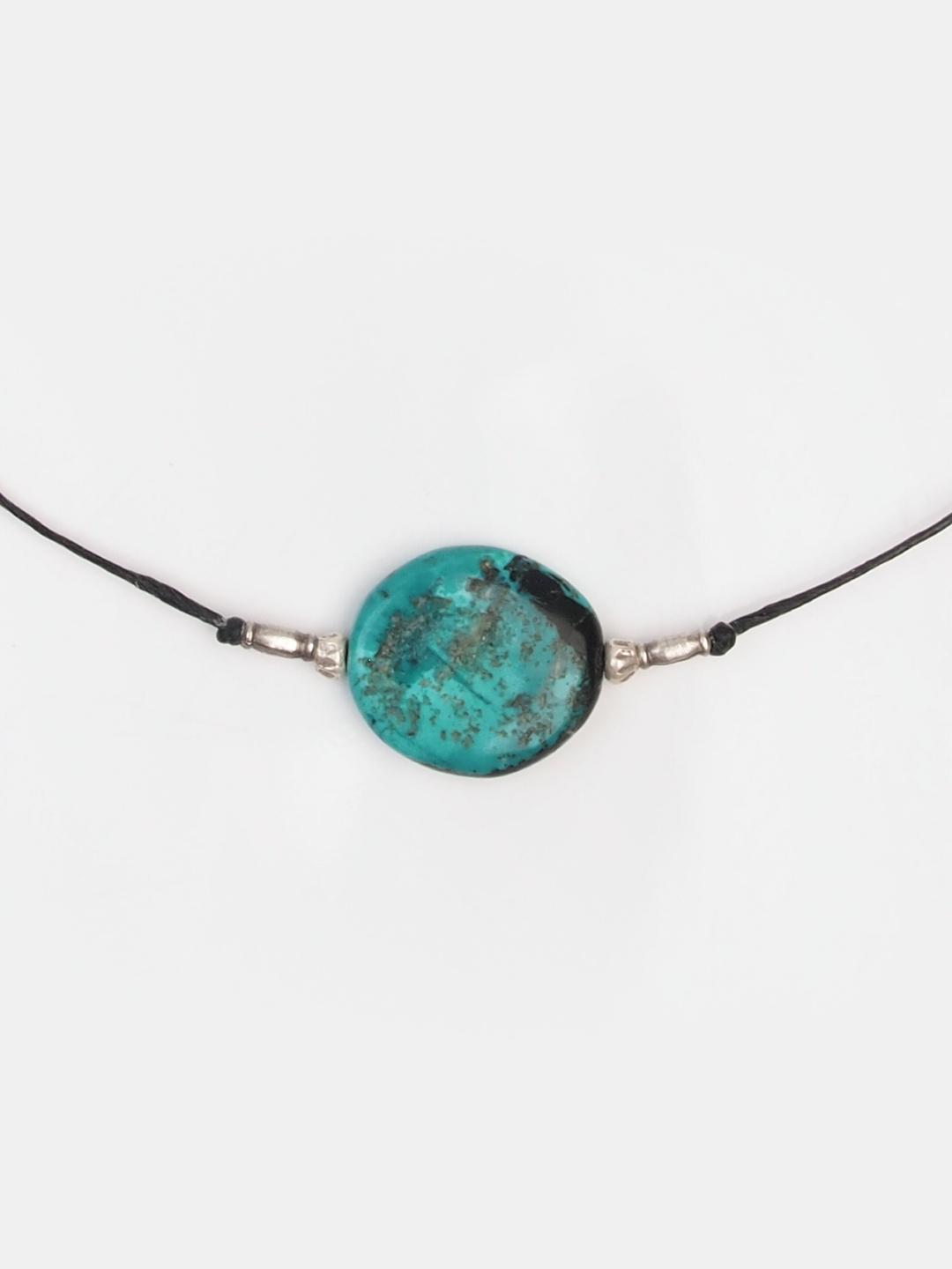 Colier unicat din turcoaz tibetan și argint 925, pe fir negru reglabil.