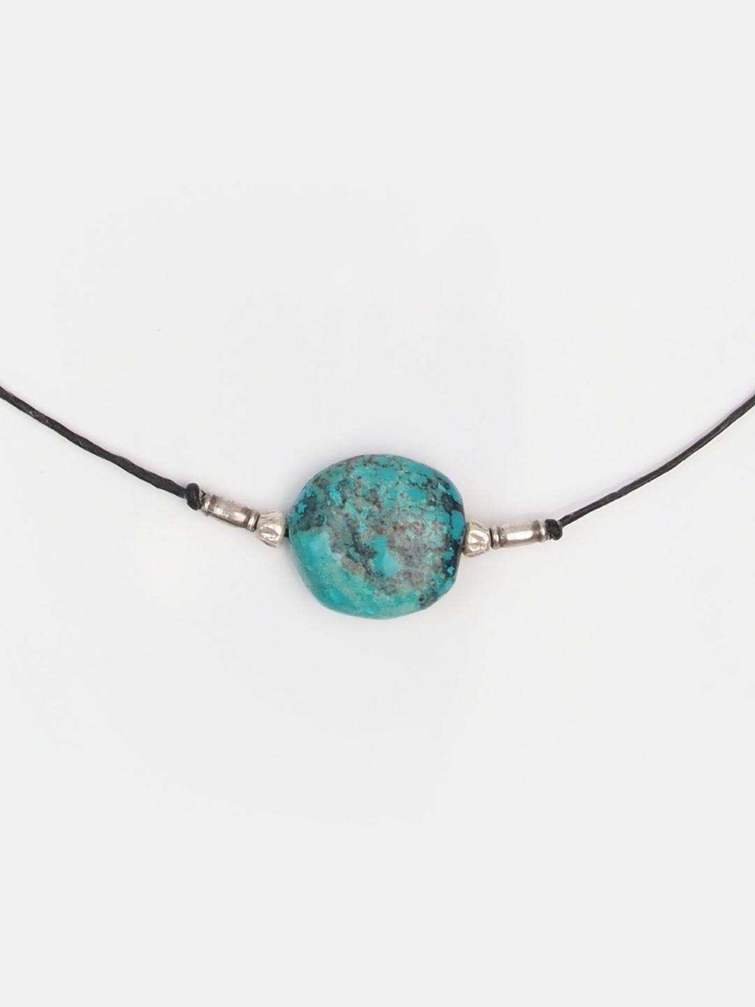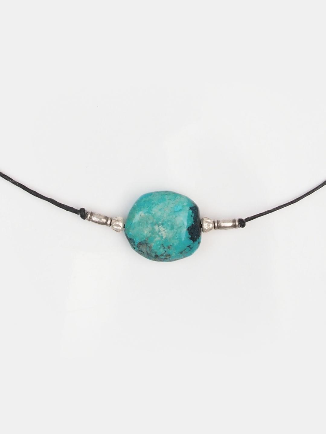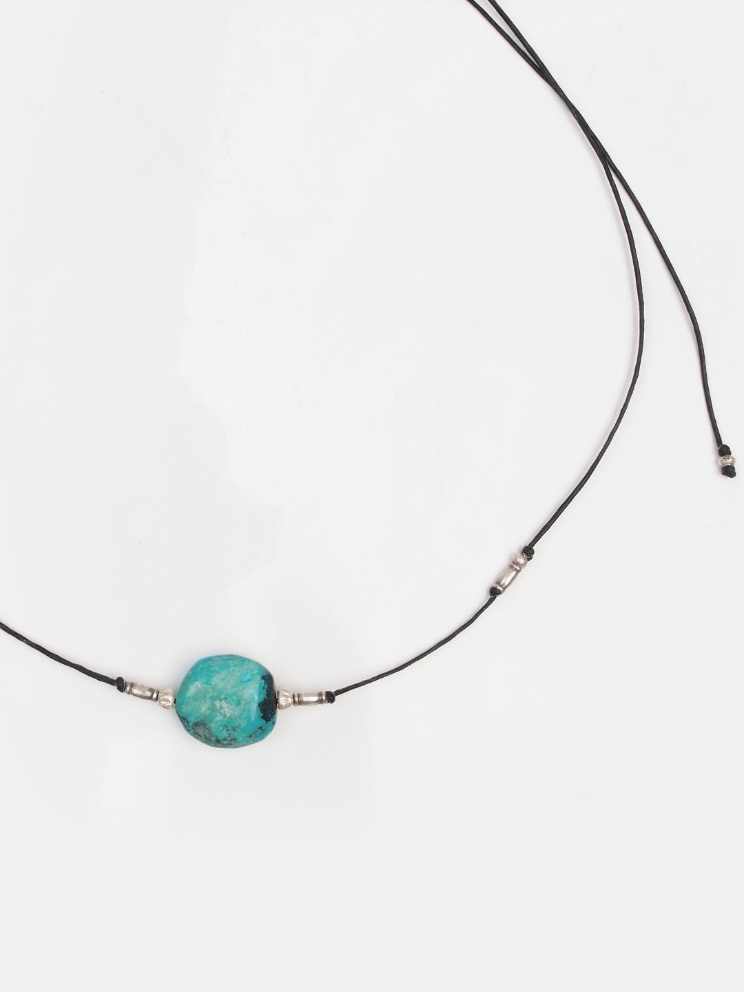 Colier unicat din turcoaz tibetan și argint 925, pe fir negru reglabil.