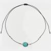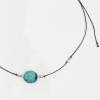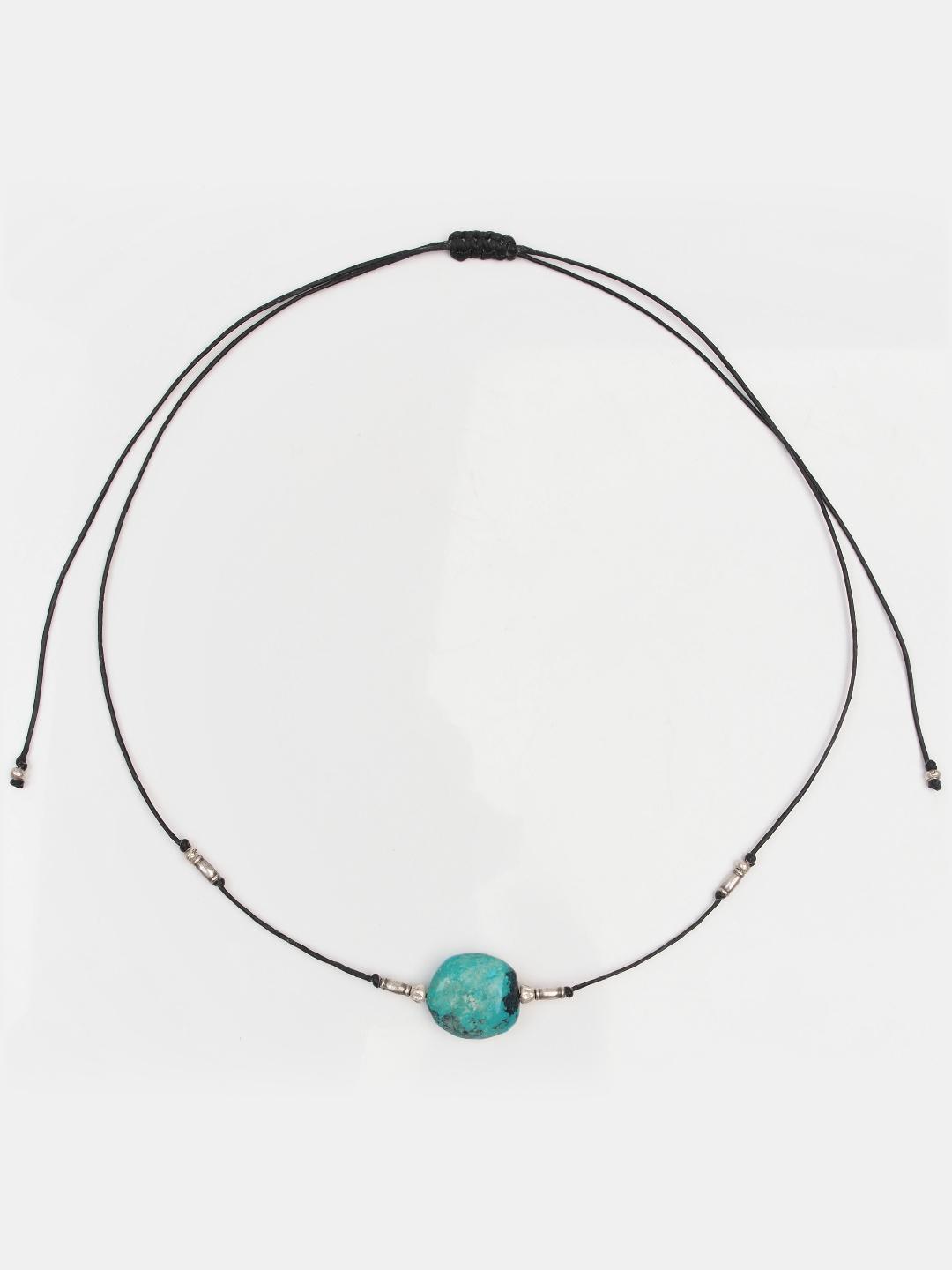 De o simplitate cuceritoare, colierul din turcoaz tibetan are un farmec atemporal. Șnurul negru cerat, punctat de mici elemente din argint converge către centrul colierului și se ajustează la gât astfel încât lungimea să se potrivească oricui.