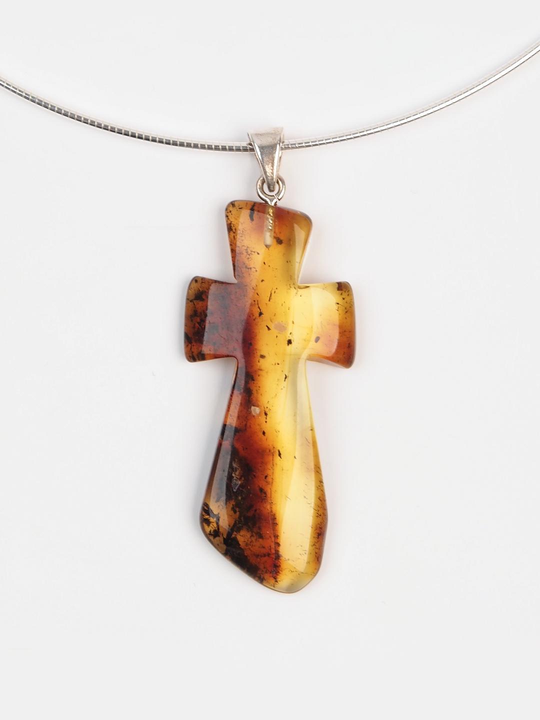 Cruce unicat din chihlimbar natural baltic cu anou din argint 925. O piesă deosebită, această cruce din chilimbar în nuanțe de galben-miere și coniac are o textură fină și mătăsoasă, e o adevărată plăcere să o porți și să o atingi.