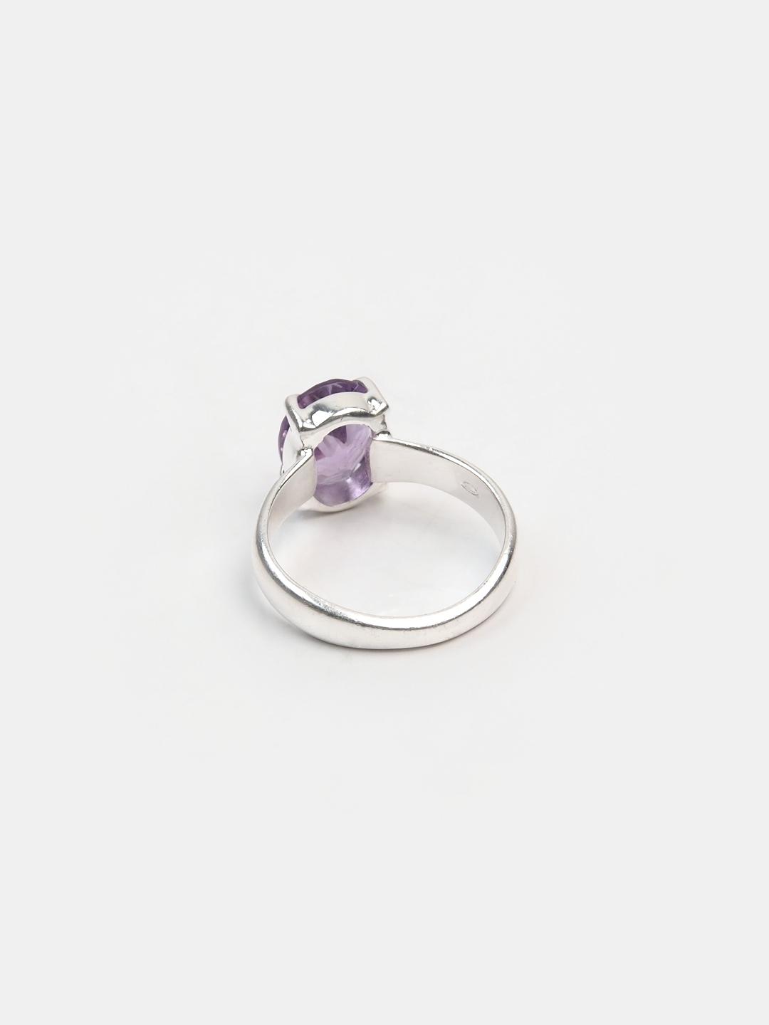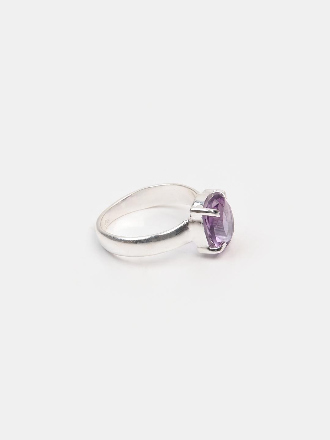 Inel din argint 925 și ametist fațetat, lucrat manual în India. Un model delicat și elegant, inelul Lahiri are o montură simplă, cu gheruțe, care pune în valoare ametistul fațetat.