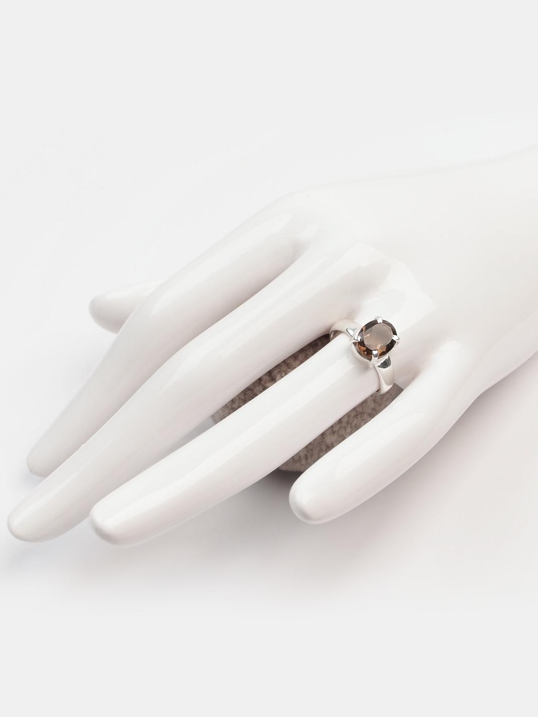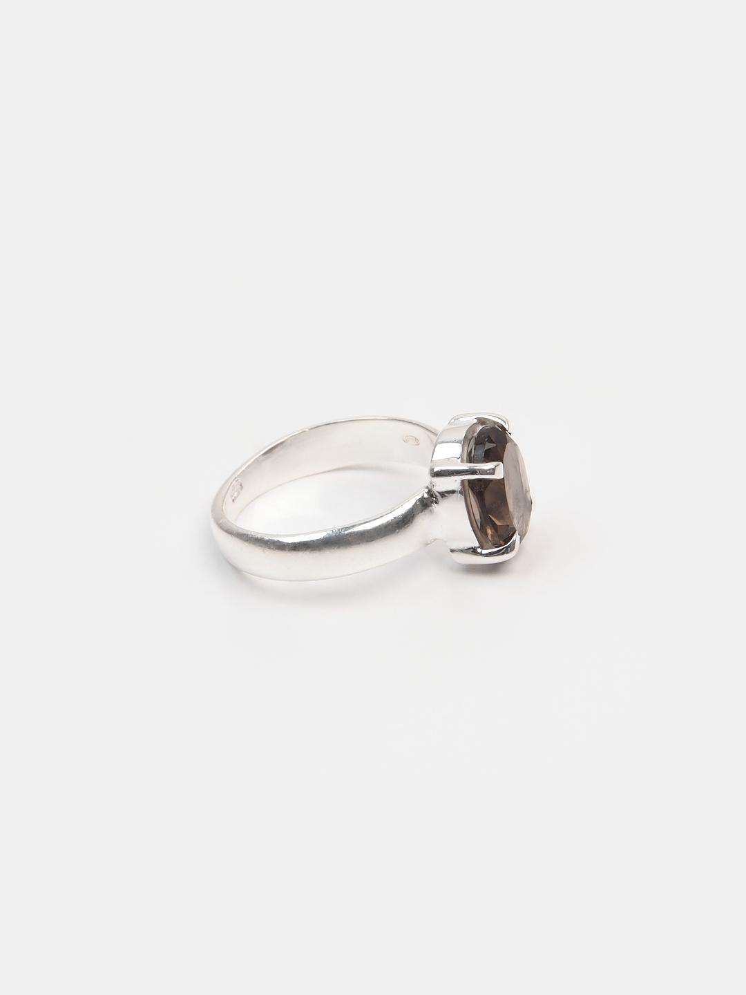 Inel din argint și cuarț fumuriu fațetat Lahiri, India