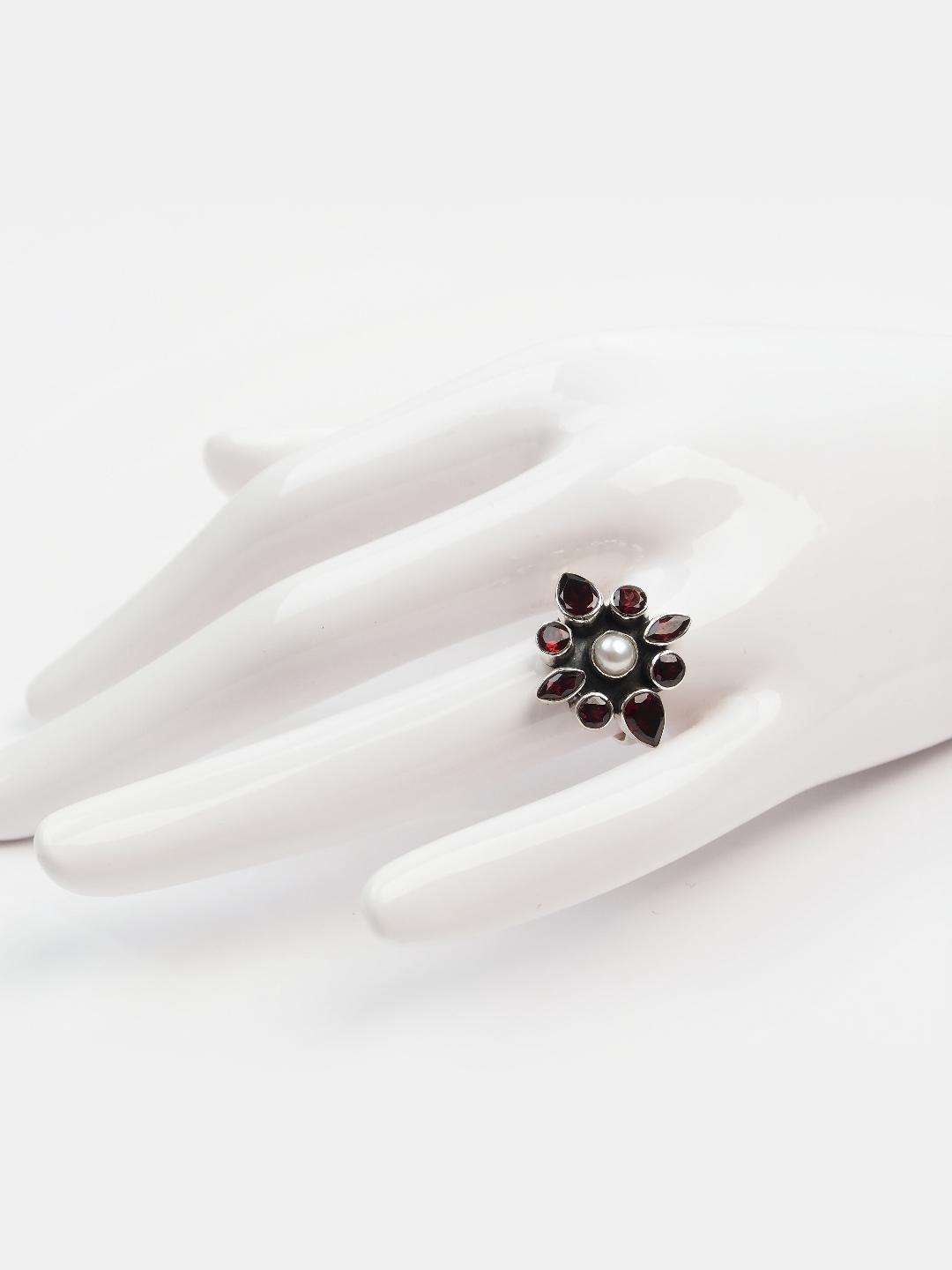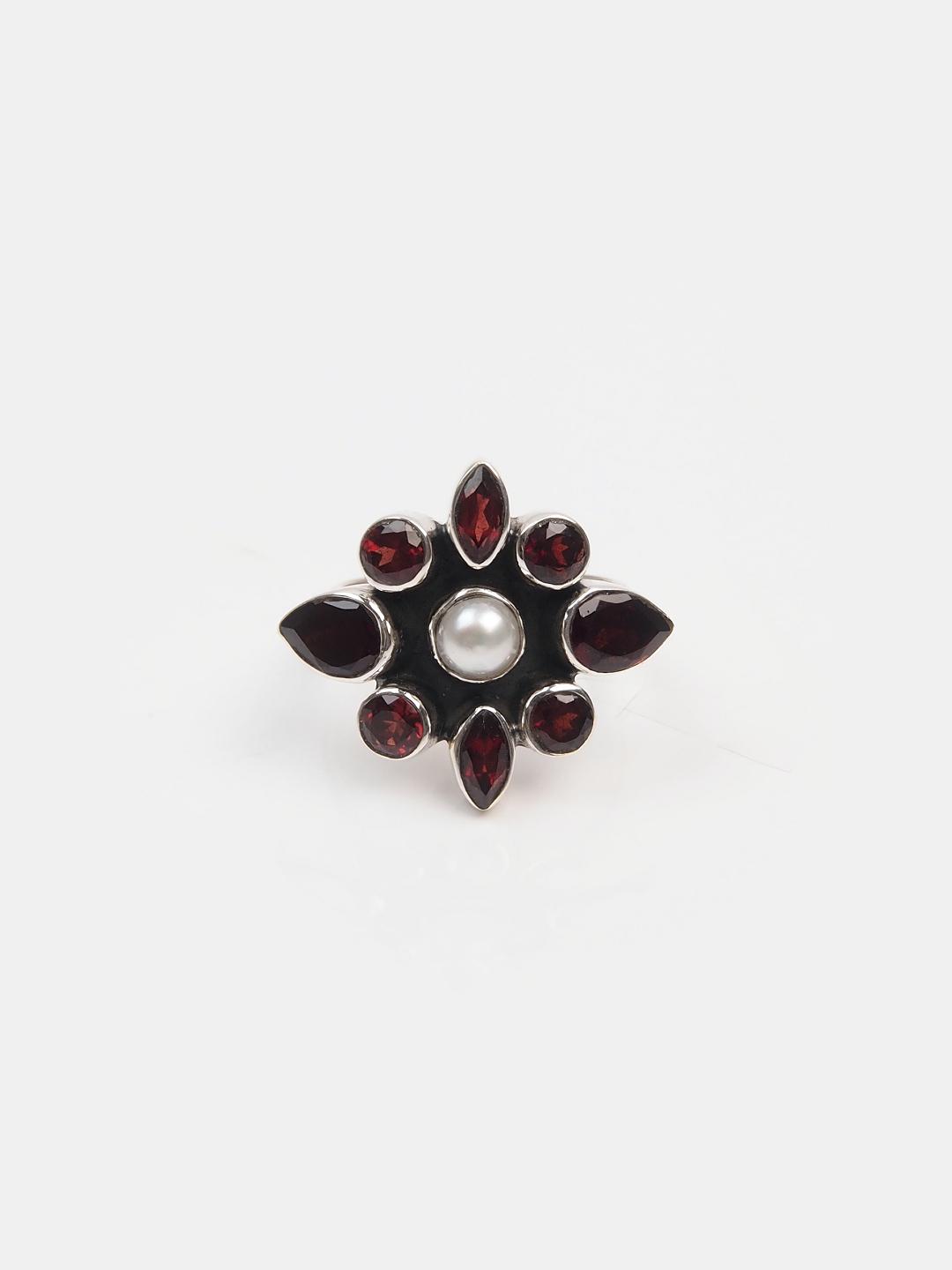 Inel din argint, granat fațetat și perlă Vikriti, India