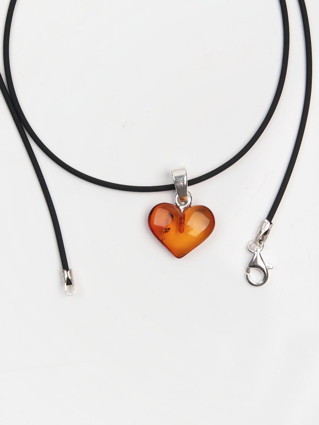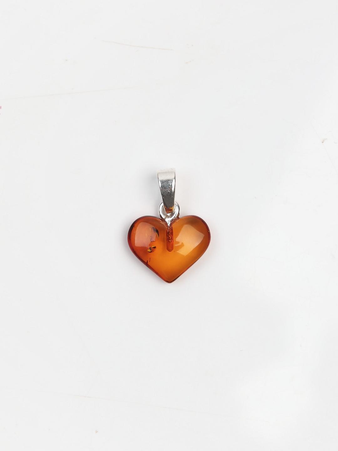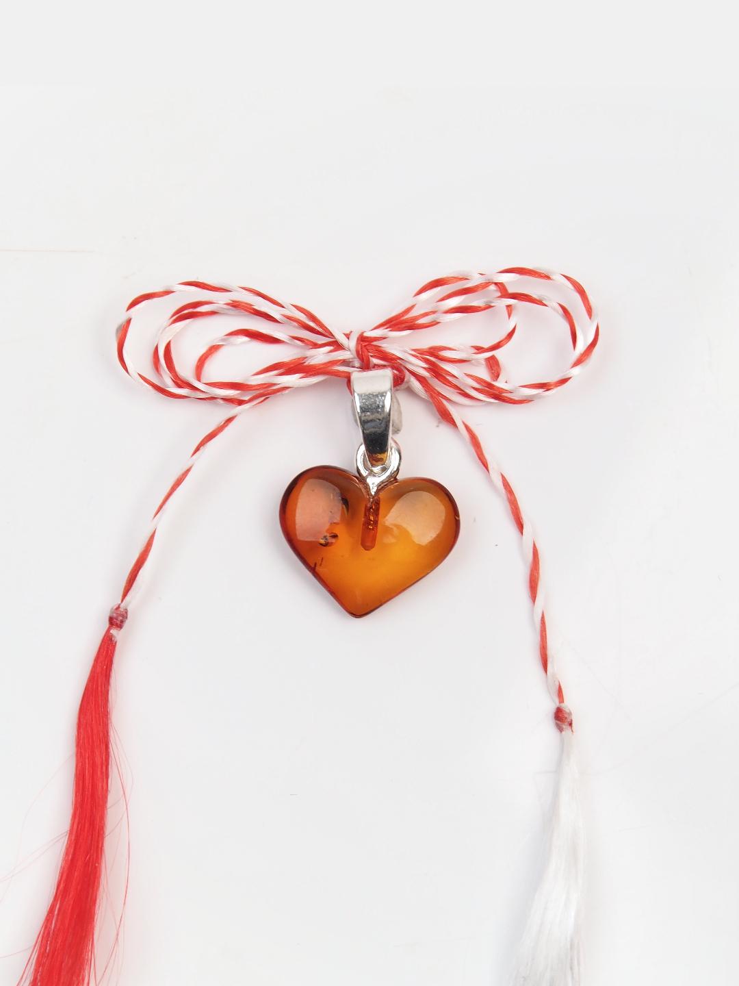 Mărțișor inimioară din argint și chihlimbar
