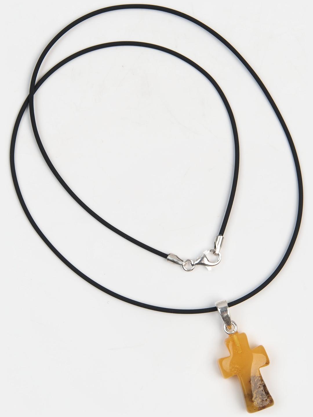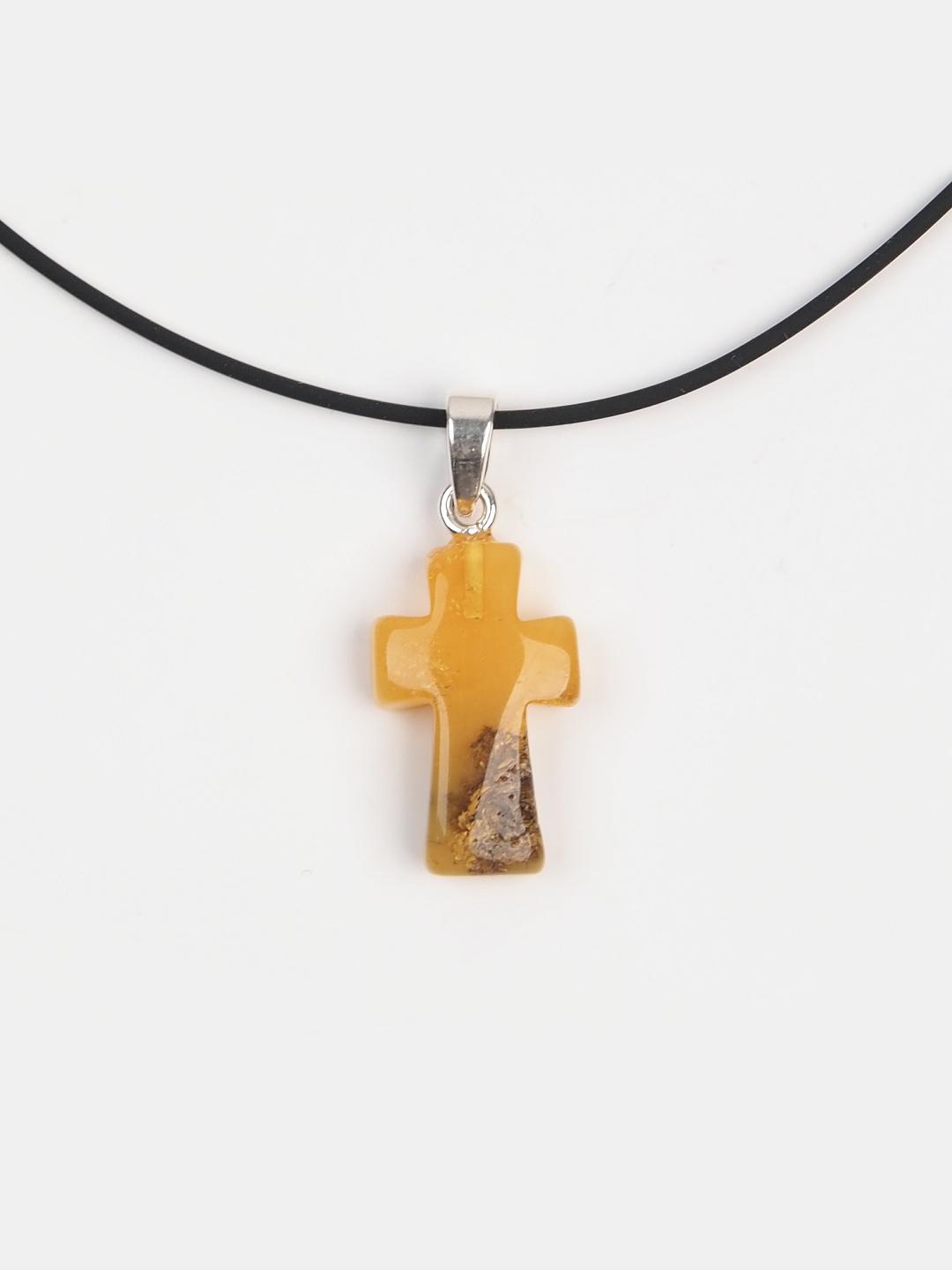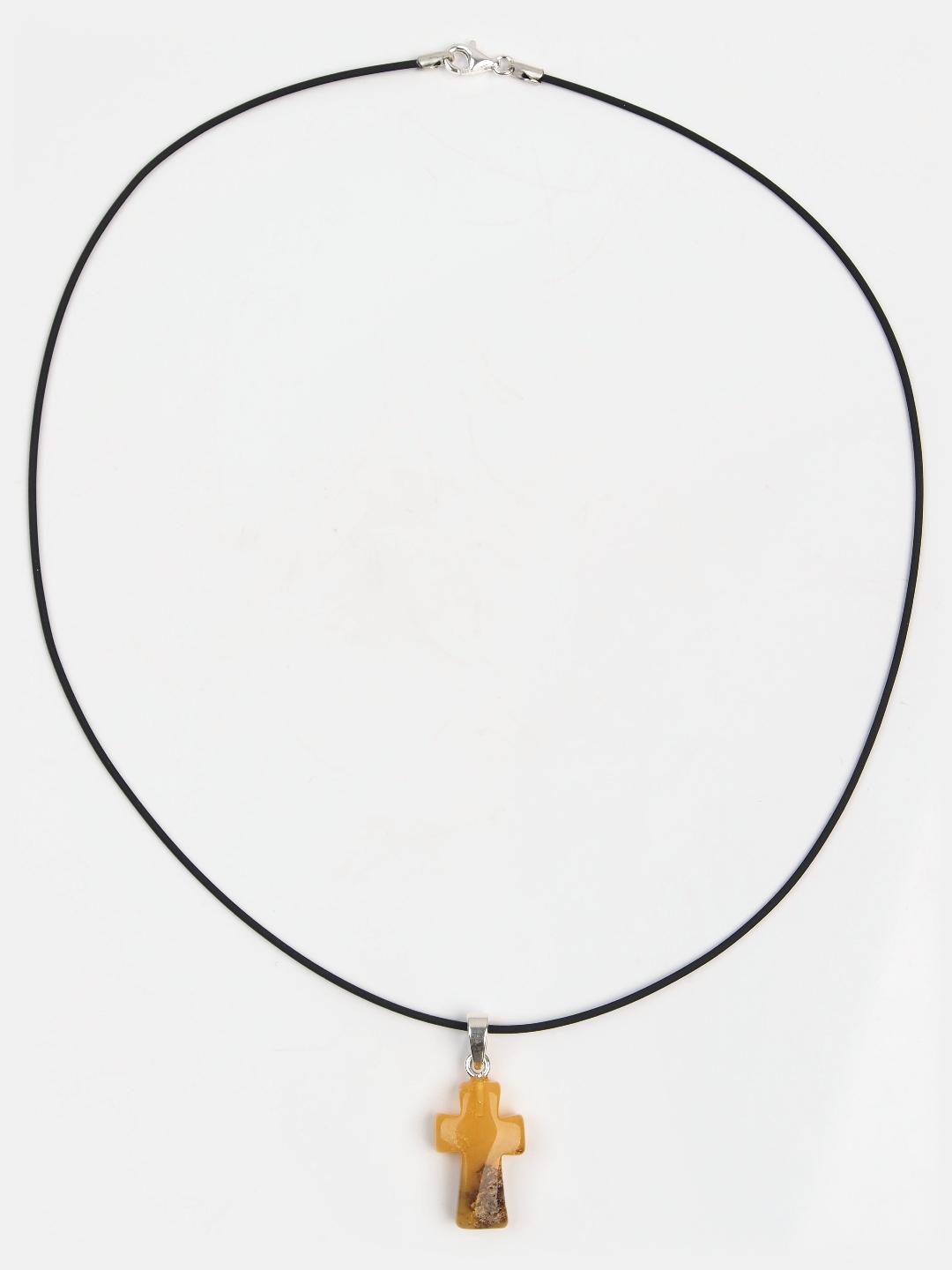 Pandantiv cruce din chihlimbar și argint pe șnur negru, Lituania