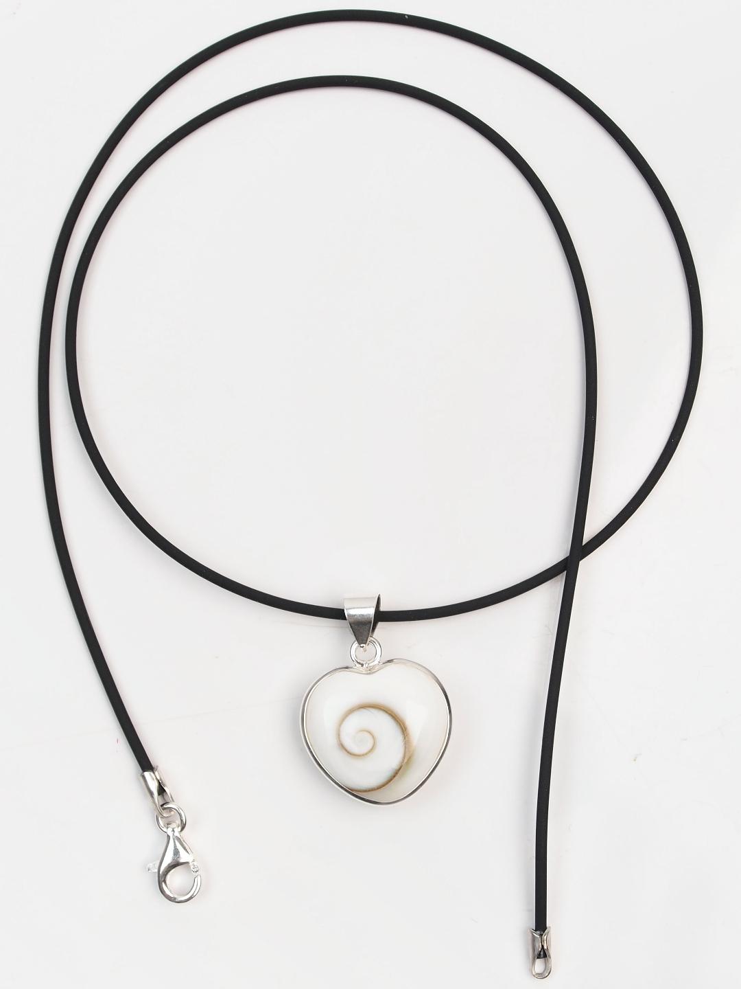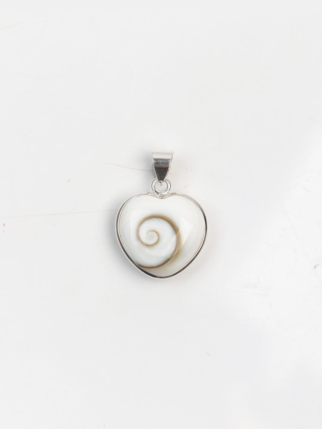 Pandantiv inimioară din argint 925 și scoică Ochiul lui Shiva, lucrat manual în India în serie mică. Inimioara din scoică este frumoasă pe ambele fețe, un pic bombată, cu un volum foarte plăcut și este prinsă într-o montură fină din argint.