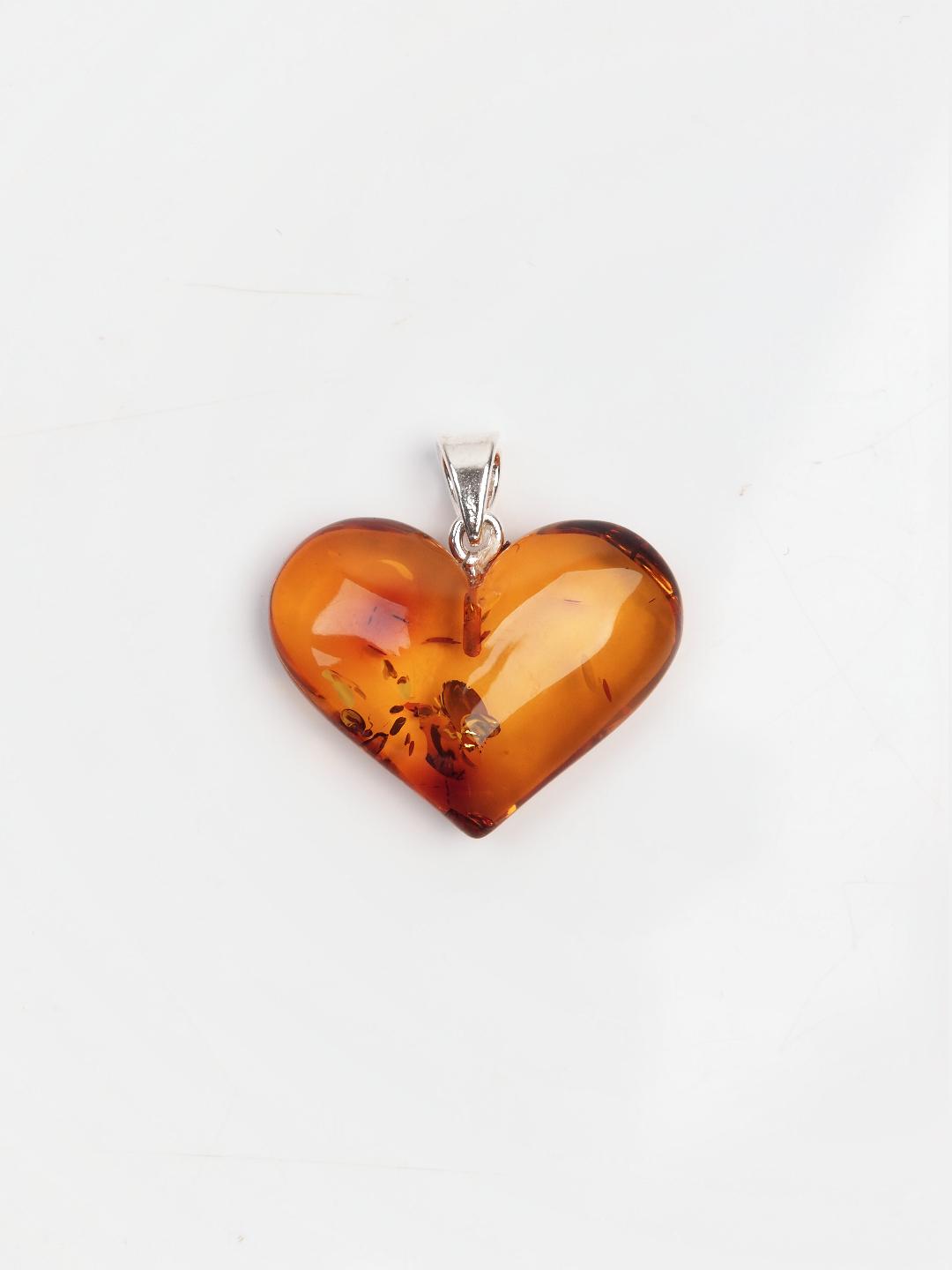 Pandantiv unicat din chihlimbar natural baltic și argint 925. O inimioară absolut irezistibilă, de nuanța coniacului te va cuceri la prima vedere.