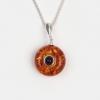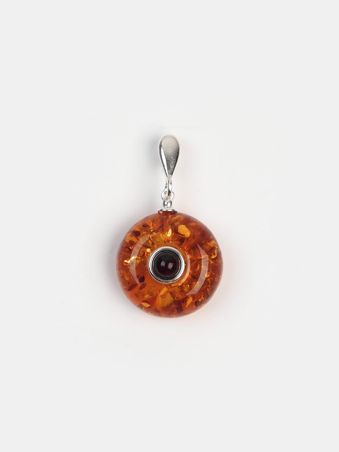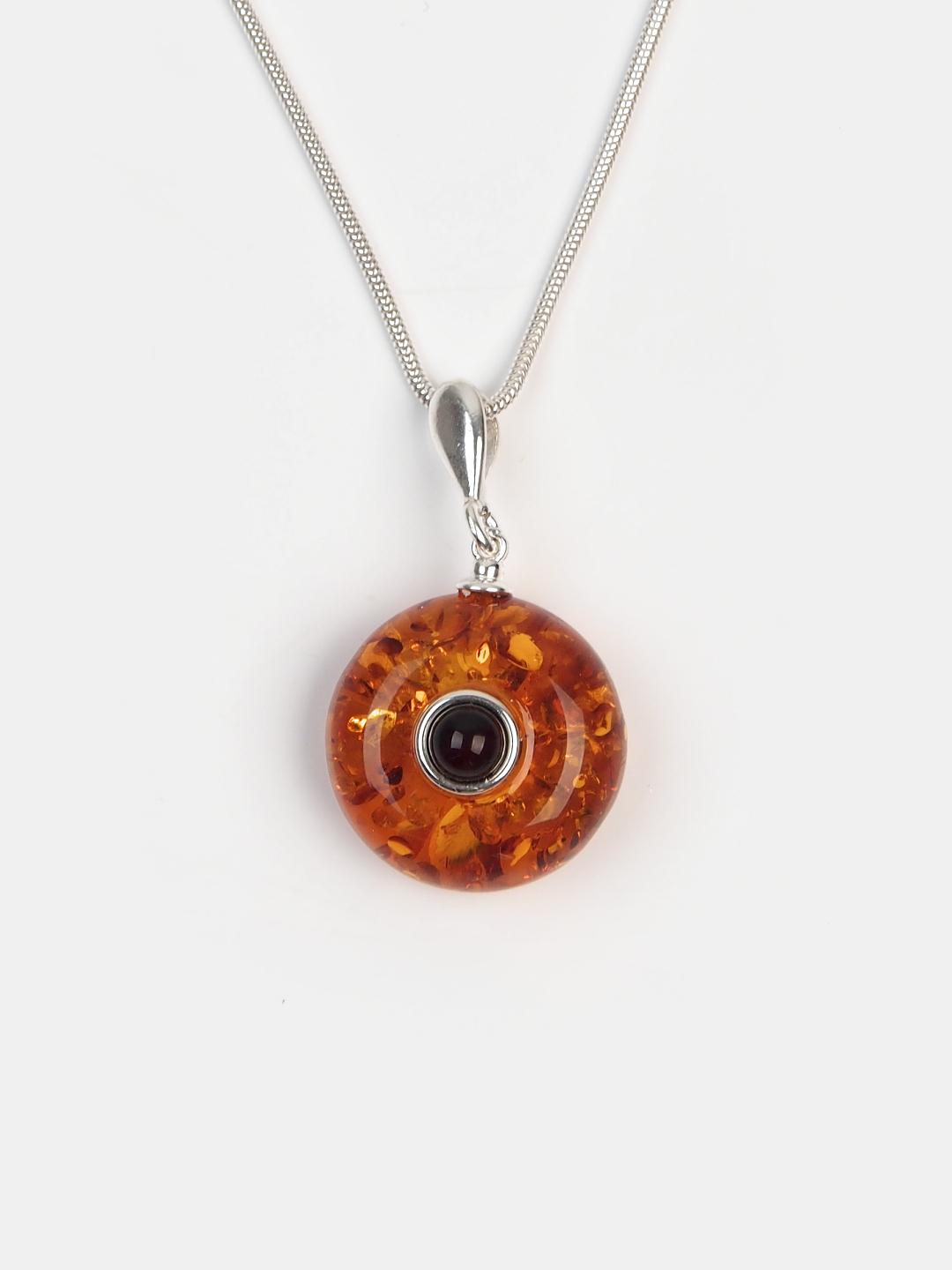 Pandantiv unicat din chihlimbar natural baltic și argint 925. Micuț și delicat, pandantivul din chihlimbar de culoarea coniacului are în centru, în motură din argint, un foarte mic chihlimbar de culoarea vinului roșu – o adevărată beție cromatică. Anoul care susține micuțul pandantiv este fin, ușor alungit, și pune foarte frumos în valoare chihlimbarul.