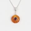 Pandantiv unicat din chihlimbar natural baltic și argint 925. Micuț și delicat, pandantivul din chihlimbar de culoarea coniacului are în centru, în motură din argint, un foarte mic chihlimbar de culoarea vinului roșu – o adevărată beție cromatică. Anoul care susține micuțul pandantiv este fin, ușor alungit, și pune foarte frumos în valoare chihlimbarul.